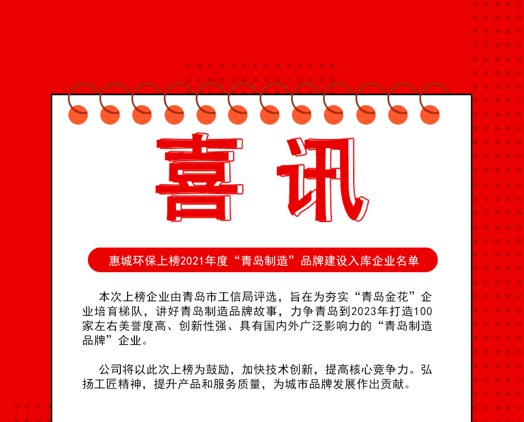 熱烈祝賀公司上榜2021年度“青島制造”品牌建設入庫企業名單