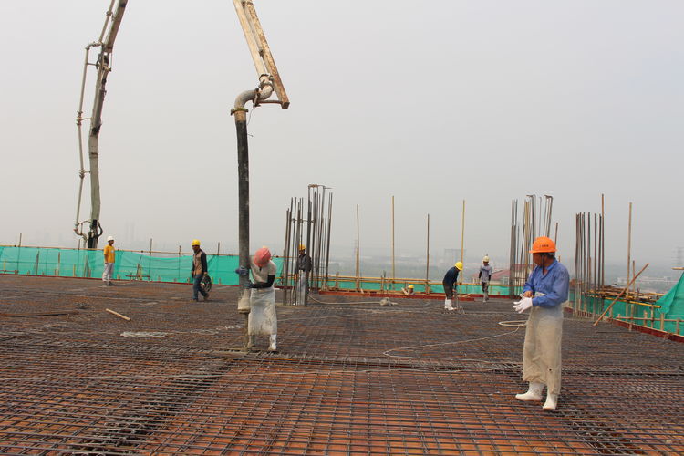 施工單位的帶領下,公司領導來到分子篩廠房頂層參觀建設情況。分子篩廠房建筑面積22308㎡,是整個項目中面積最大、工程量最大、施工難度最大,設計、工藝最復雜的建筑單體。在臺風、高溫極端天氣及交叉作業、疫情等諸多不利因素影響下,為加快推進建設進程,項目建設指揮部全體成員放棄節假日休息,以“5+2”、“白+黑”的戰斗精神,全部深入一線進行質量檢查和安全督導,他們迎難而上、披荊斬棘,是惠城精神的真實寫照;施工單位增加人員、機械設備,安排工人三班倒作業,保證施工現場24小時不停工;監理、勘察、造價等參建單位加班加點,“隨叫隨到,不叫也到”......各方精誠合作,共同推進,終于迎來了8月10日這一封頂時刻。