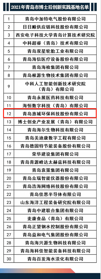 捷報頻傳!公司被認定為青島市2021年博士后創(chuàng)新實踐基地