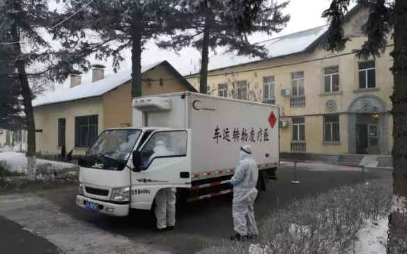 在黑龍江省傳染病防治院,醫(yī)療廢物要照平時更加及時的轉(zhuǎn)運。此時,醫(yī)療廢物轉(zhuǎn)運車正停在這里,對醫(yī)療廢物進行清運。黑龍江省傳染病防治院副院長劉玉琴介紹,截至1月30號24時,這里共收治兩例確診病例,疑似病例10多例。相對來說,這些患者病情都比較平穩(wěn)。按照國家和黑龍江省疾控部門的要求,黑龍江省傳染病防治院嚴格執(zhí)行醫(yī)療廢物處置標準,使用黃色收集袋封存醫(yī)療廢物,并噴灑消毒液,并與轉(zhuǎn)運單位隨時溝通,及時轉(zhuǎn)運。劉玉琴說:“每天早晨七點半到八點半會有專車過來,定時、定點、定人轉(zhuǎn)接。根據(jù)患者量產(chǎn)生垃圾不同,下午可能要臨時再過來一次,集中再收走。”